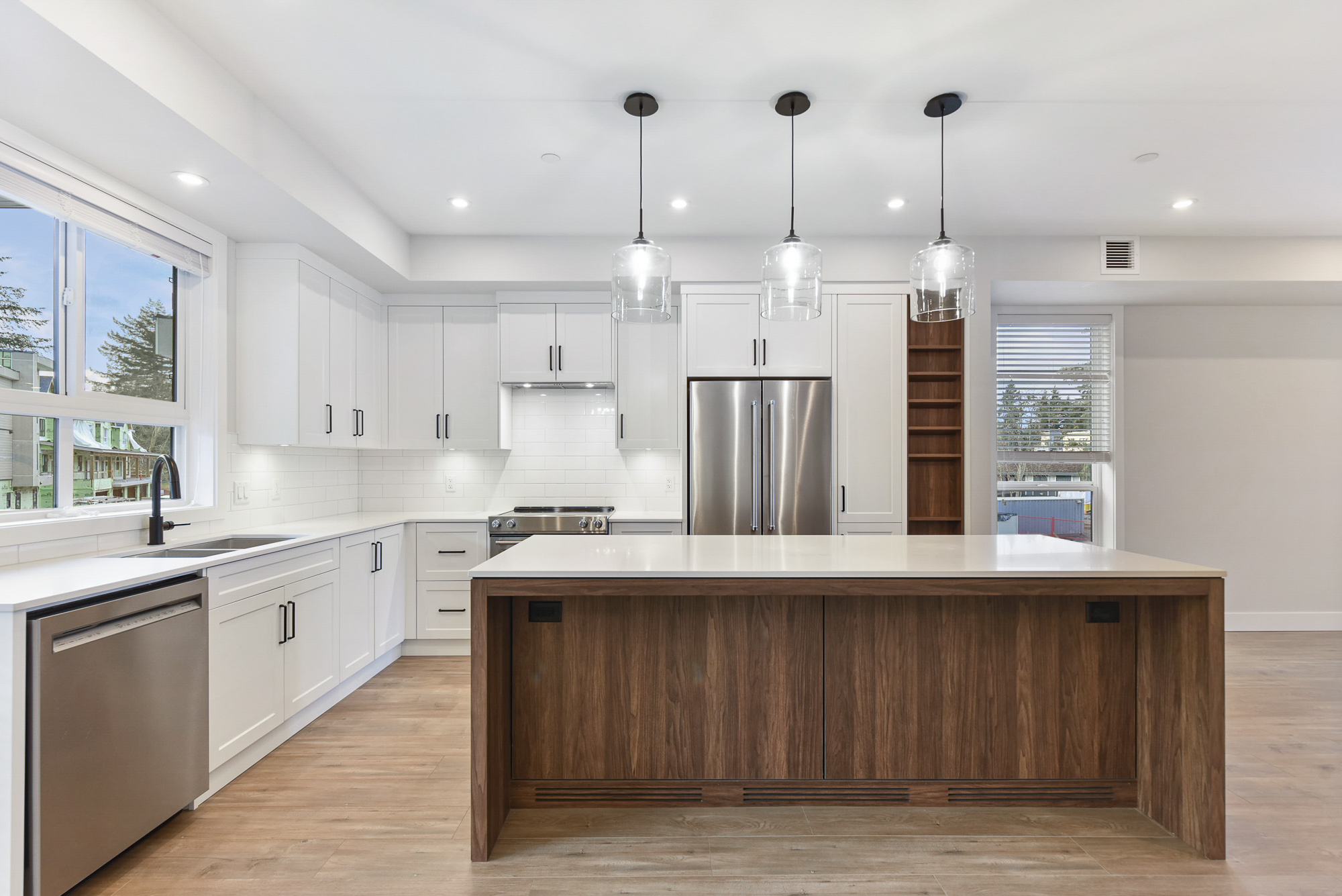 Upstairs, you'll find three thoughtfully designed bedrooms filled with natural light. The primary suite includes a walk-in closet and a spacious double-vanity ensuite. Additional conveniences include an EV charger to make day-to-day life even easier.