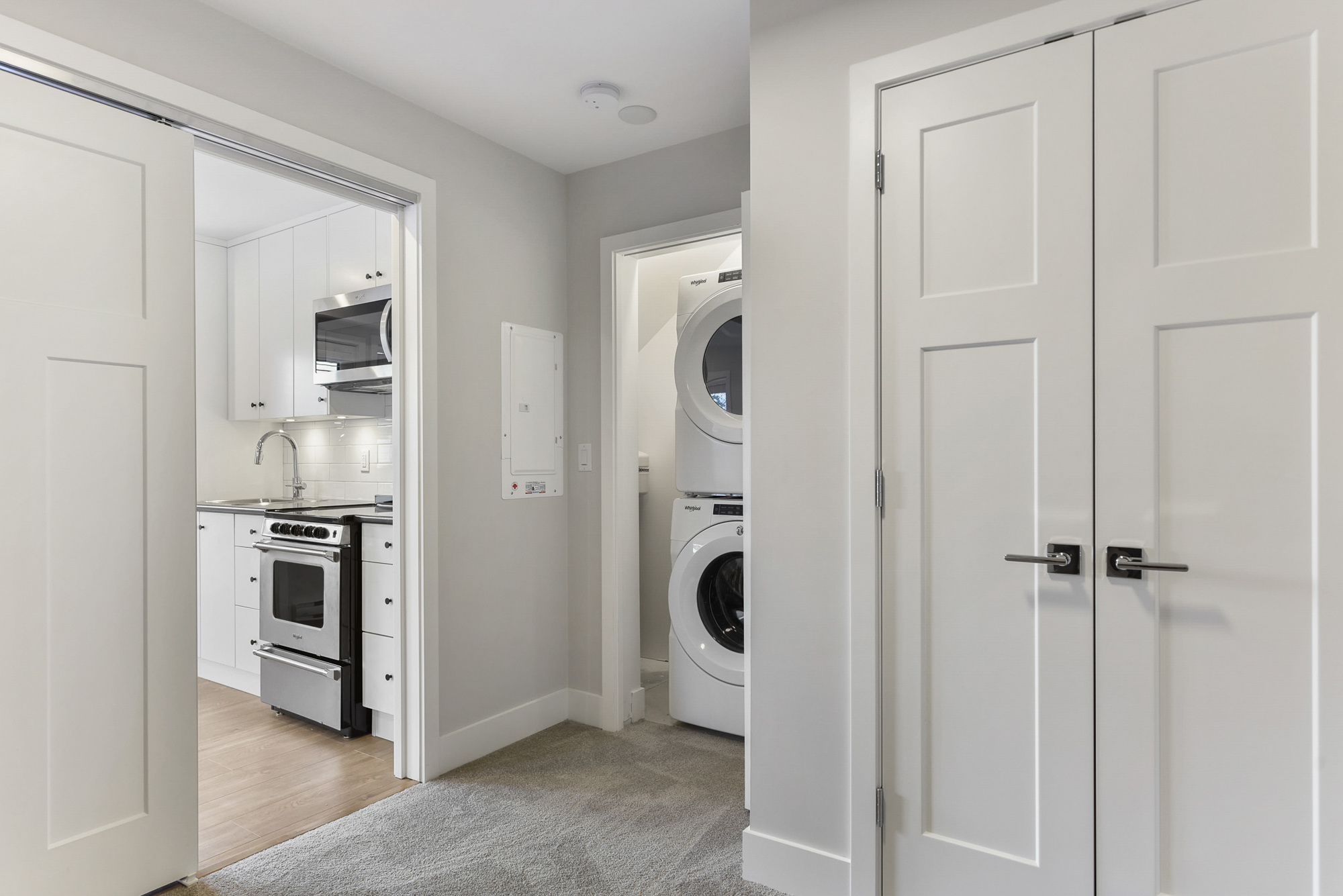 Welcome to your new home at Acadia – a compact and efficient 1-bedroom suite designed with simplicity and comfort in mind. Ideal for a single tenant, this suite includes everything you need: in-suite laundry, an open living area, and a bedroom that comfortably fits a double bed. The space is clean, well-maintained, and easy to manage. Water is included in the rent, and hydro is in your own name. One assigned parking stall is also included for your convenience. Located in a quiet, well-managed building close to transit and amenities, this is a great option for someone looking for low-maintenance living in a great location