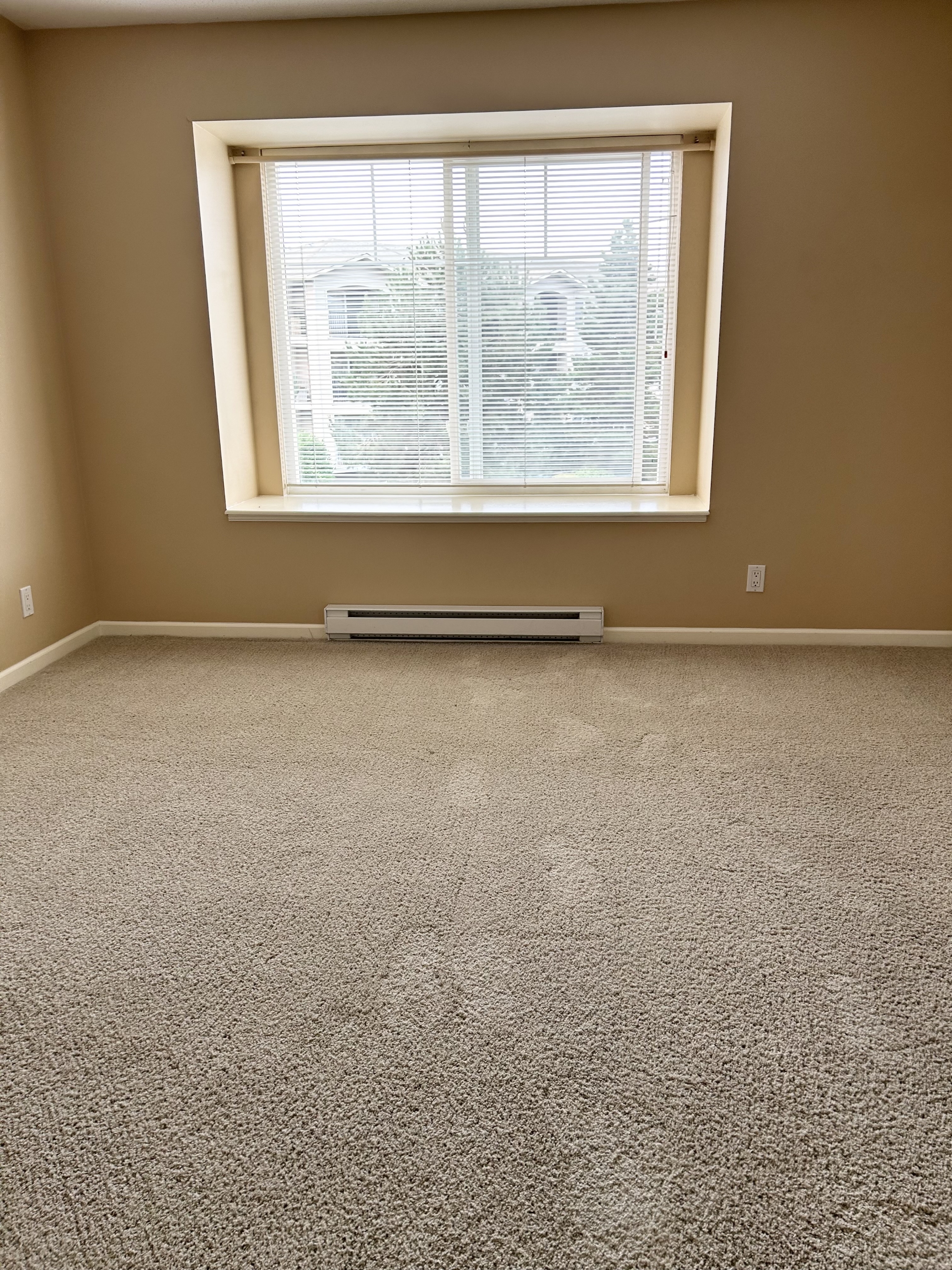 Comfortable Flooring: Carpeted living room and bedroom for a cozy feel.