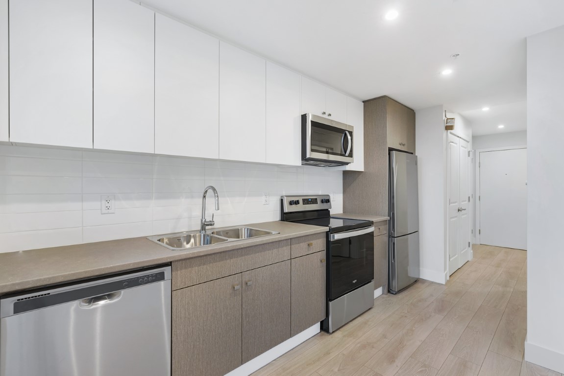 Cinema Building One is a newly built strata property for the rental market, completed May 2021. The building is a contemporary 6-floor design with underground parking and is located near King Rd/McCallum Rd; very close to the University of the Fraser Valley. The suite features in-suite laundry, stainless steel appliances, laminate and tile flooring. A quiet building with a convenient location. 1 Parking space and a storage locker are included. BC Hydro not included.