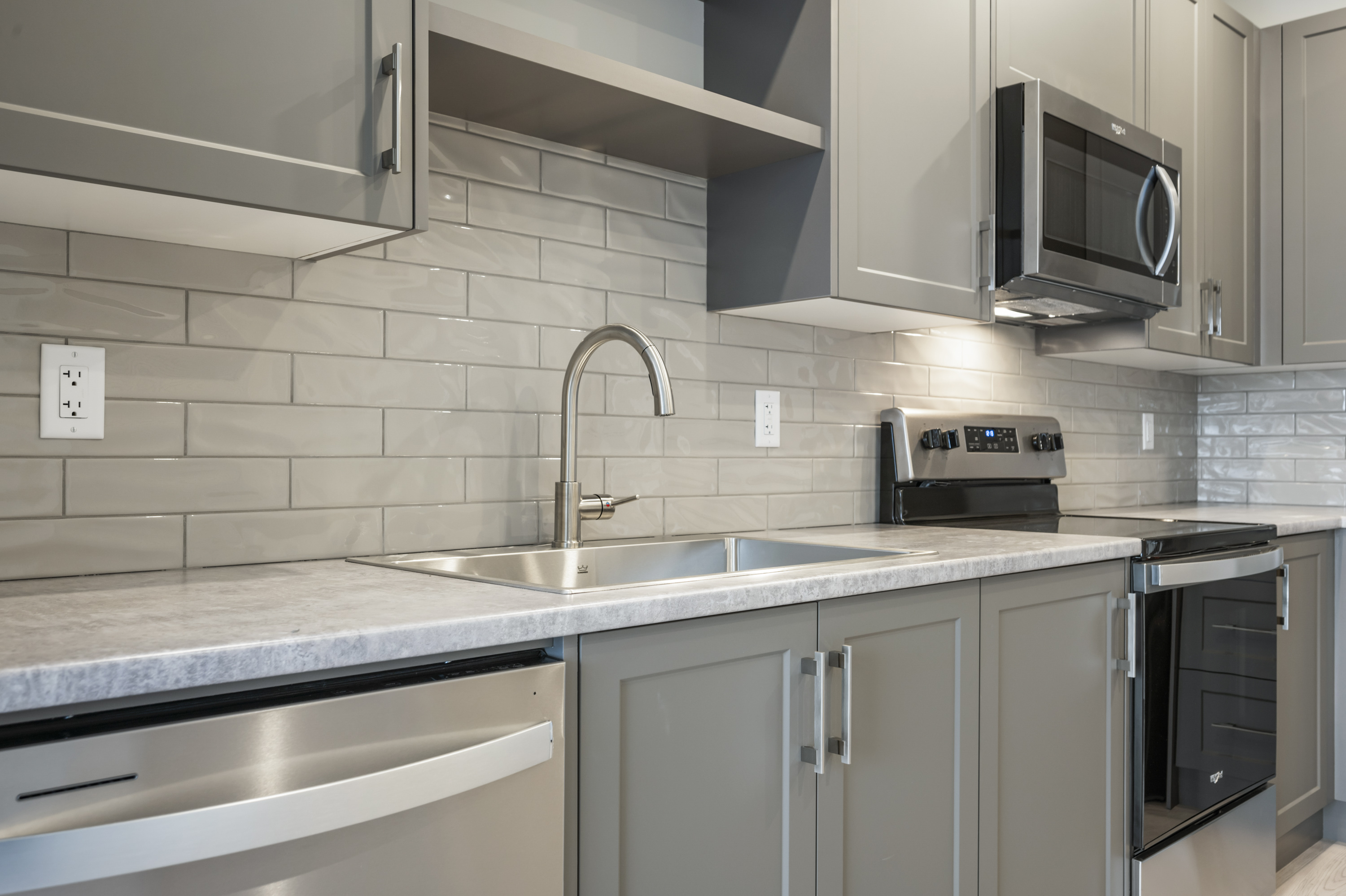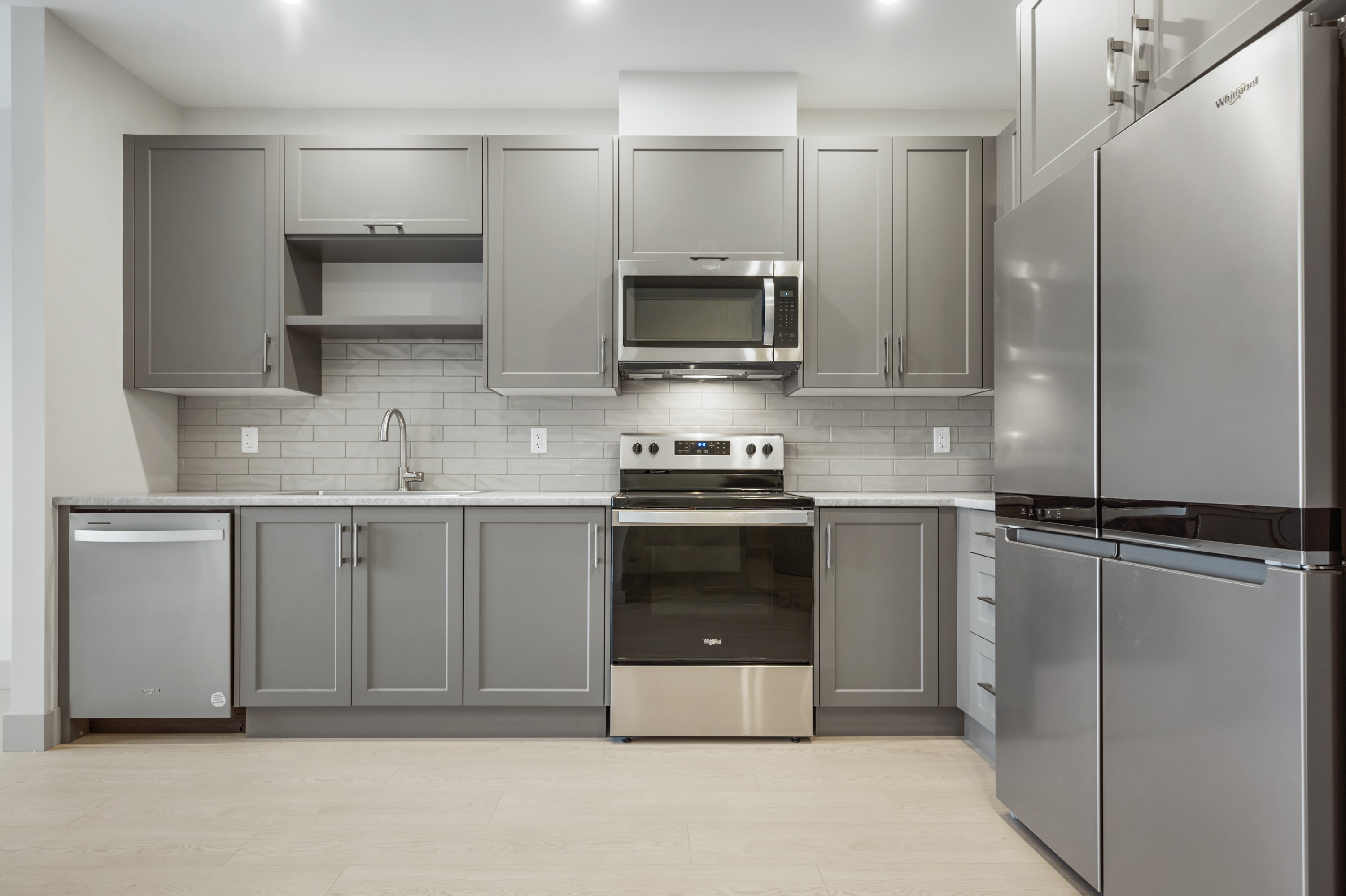 - Whirlpool appliances, including a dishwasher, microwave, fridge, and stove