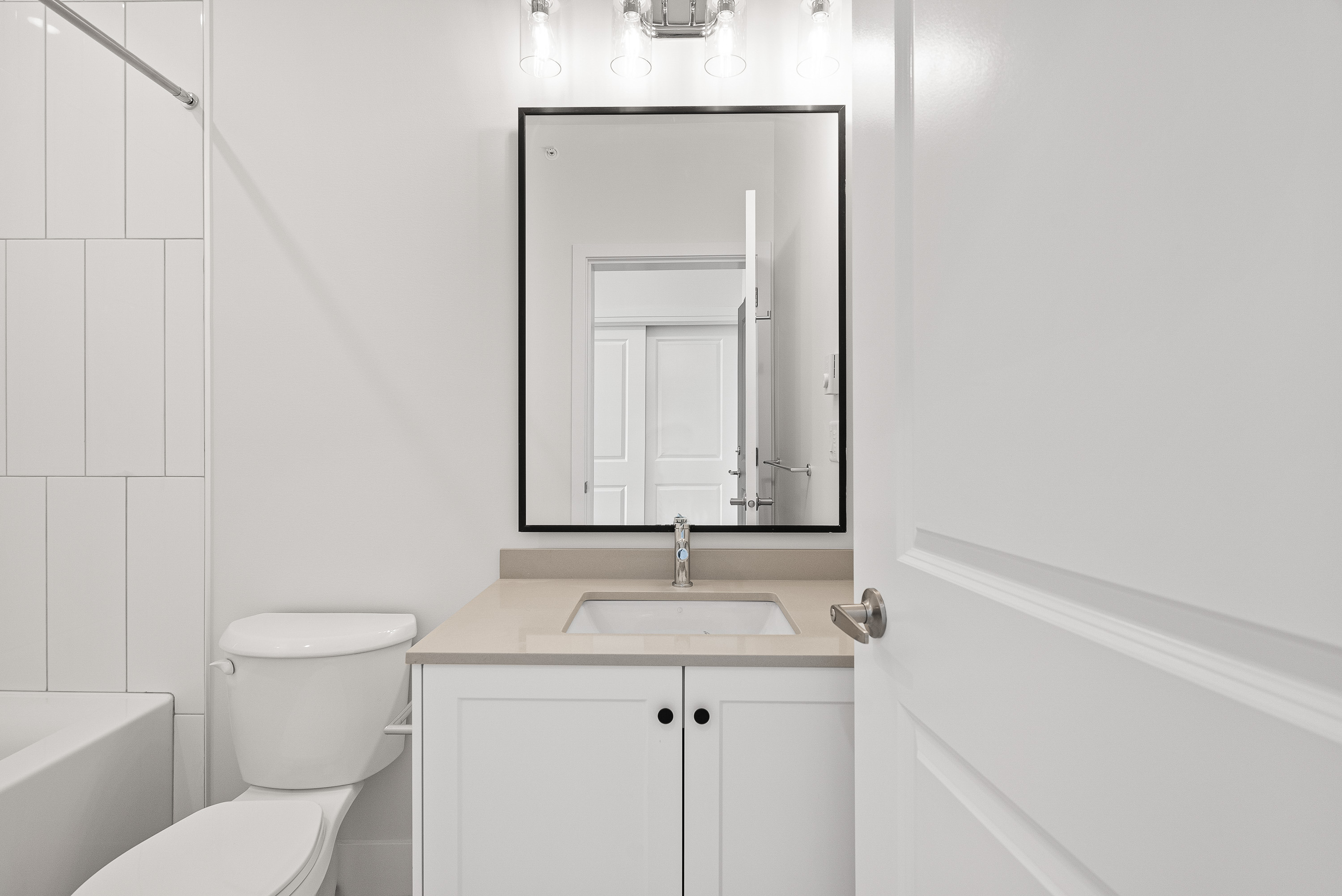 Modern Bathroom: A clean, contemporary bathroom with quality finishes completes the home.